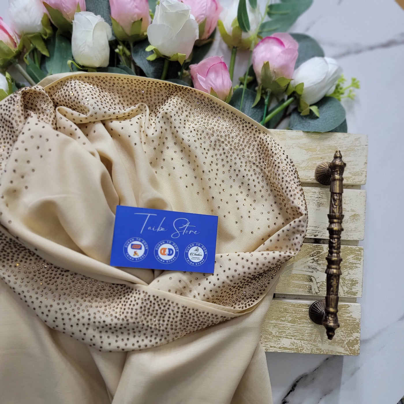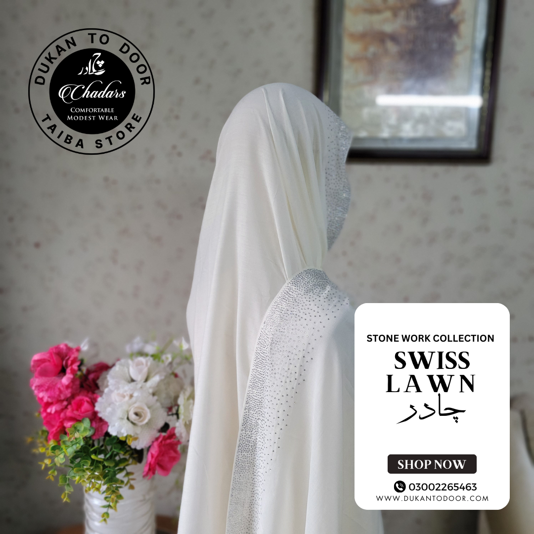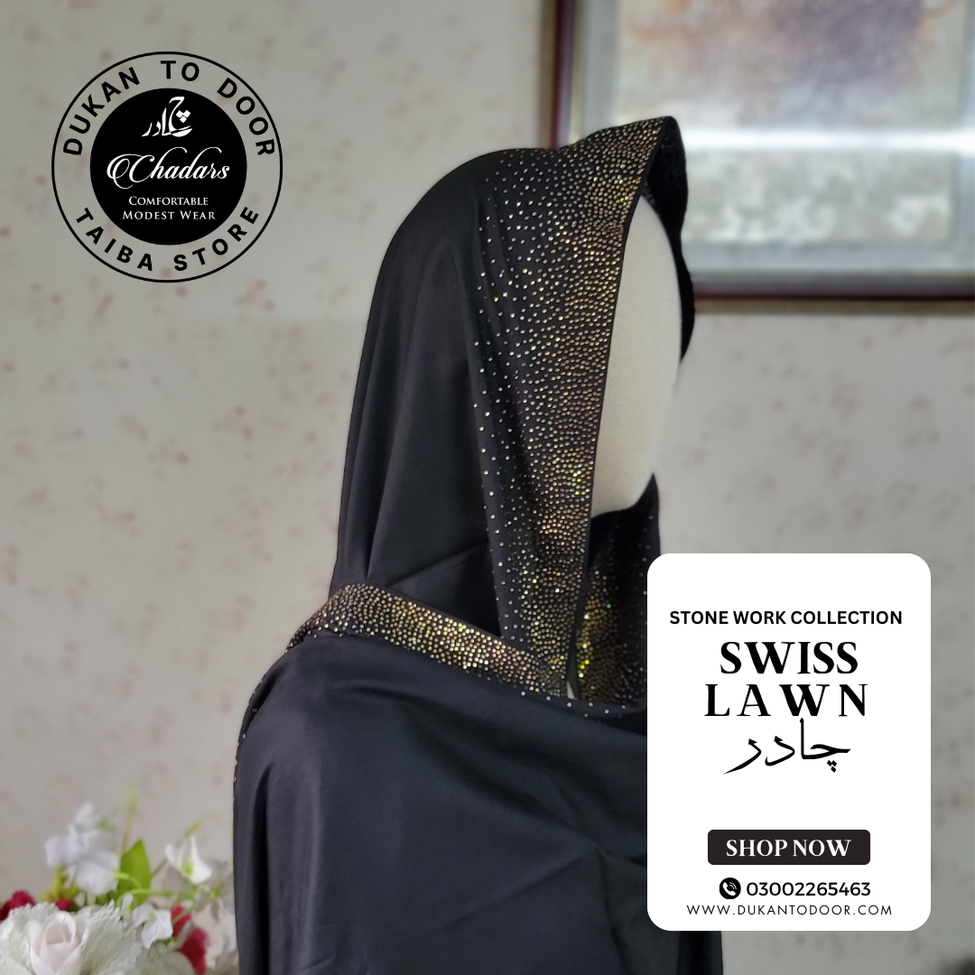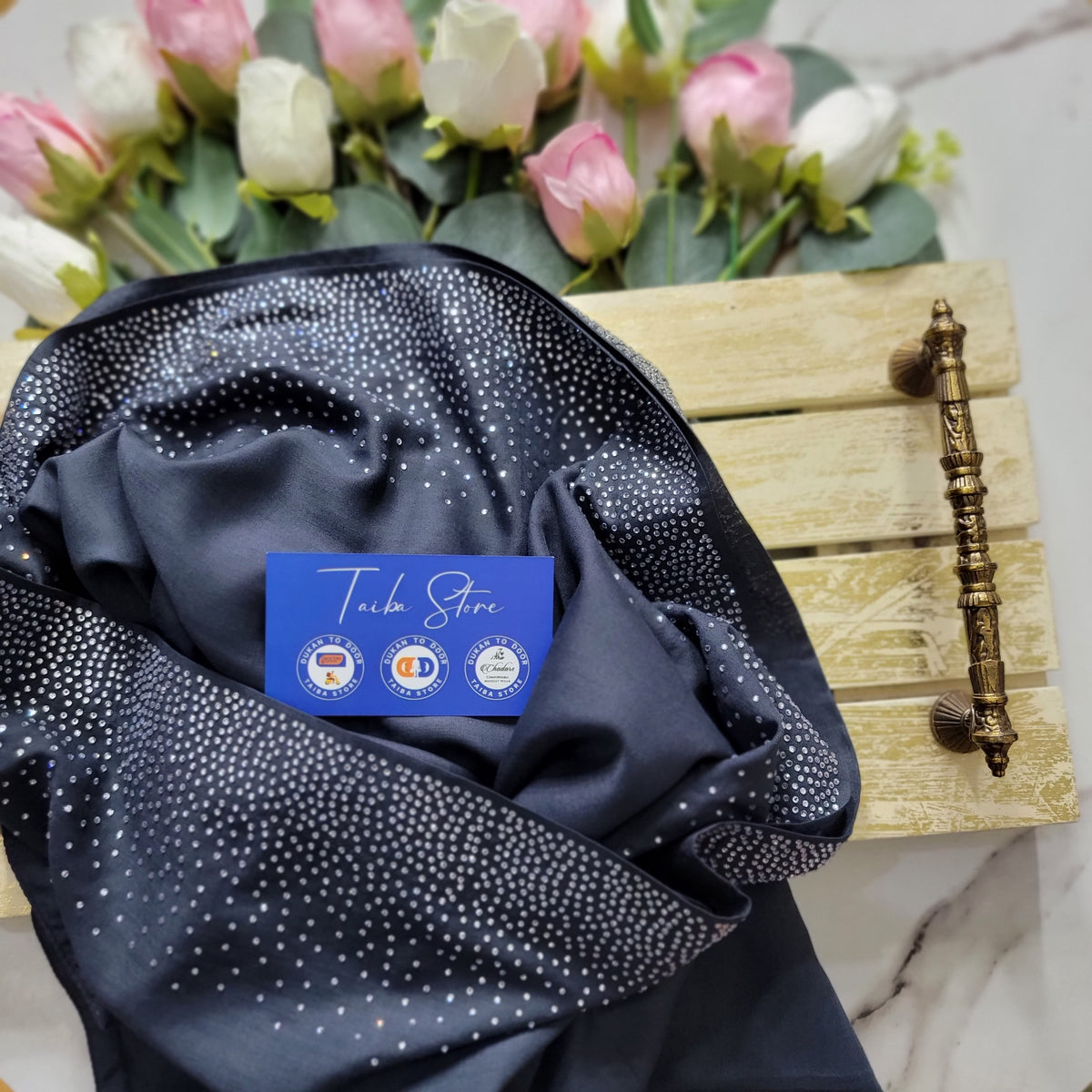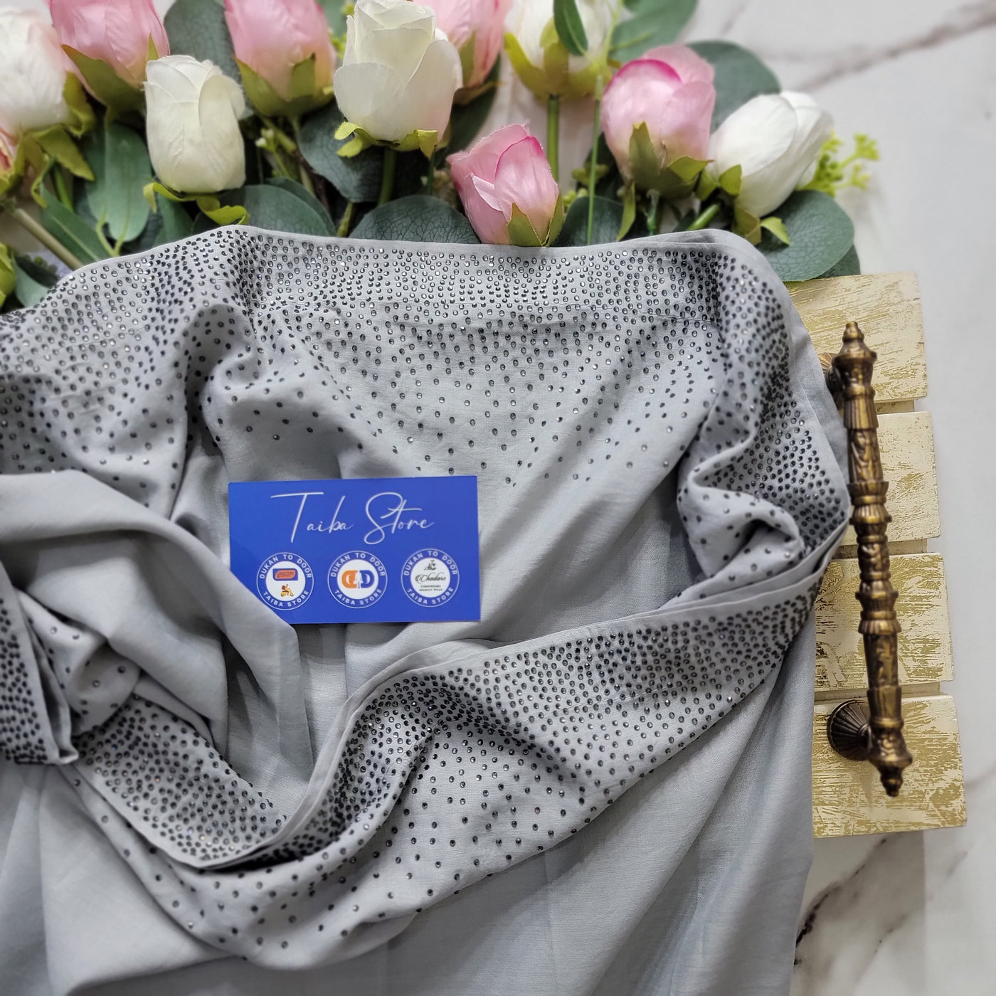 This chadar features a beautiful scattered stone pattern inspired by falling rain, adding a subtle yet luxurious shine to your modest wear. Lightweight, comfortable, and timeless, perfect for daily use, gatherings, and gifting.