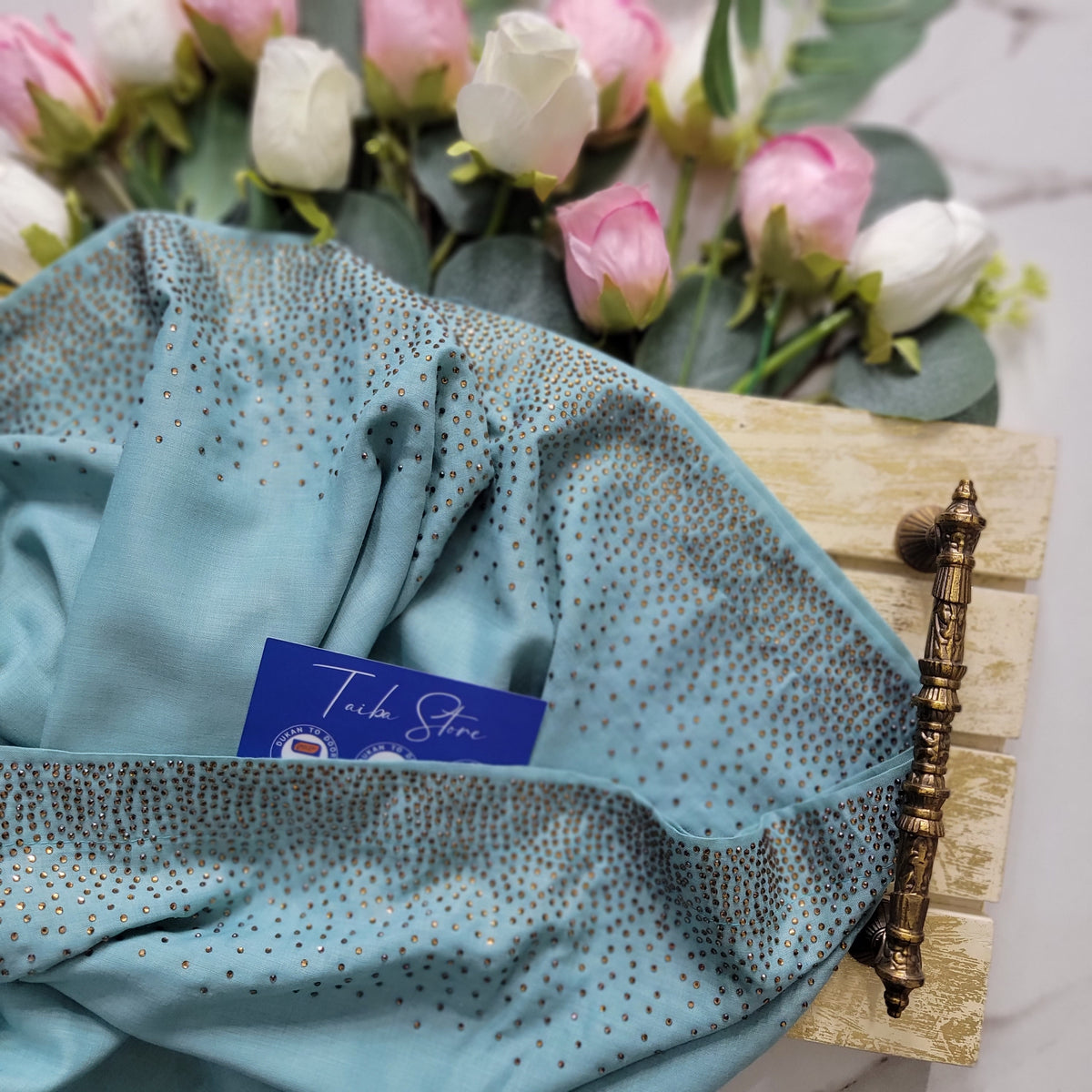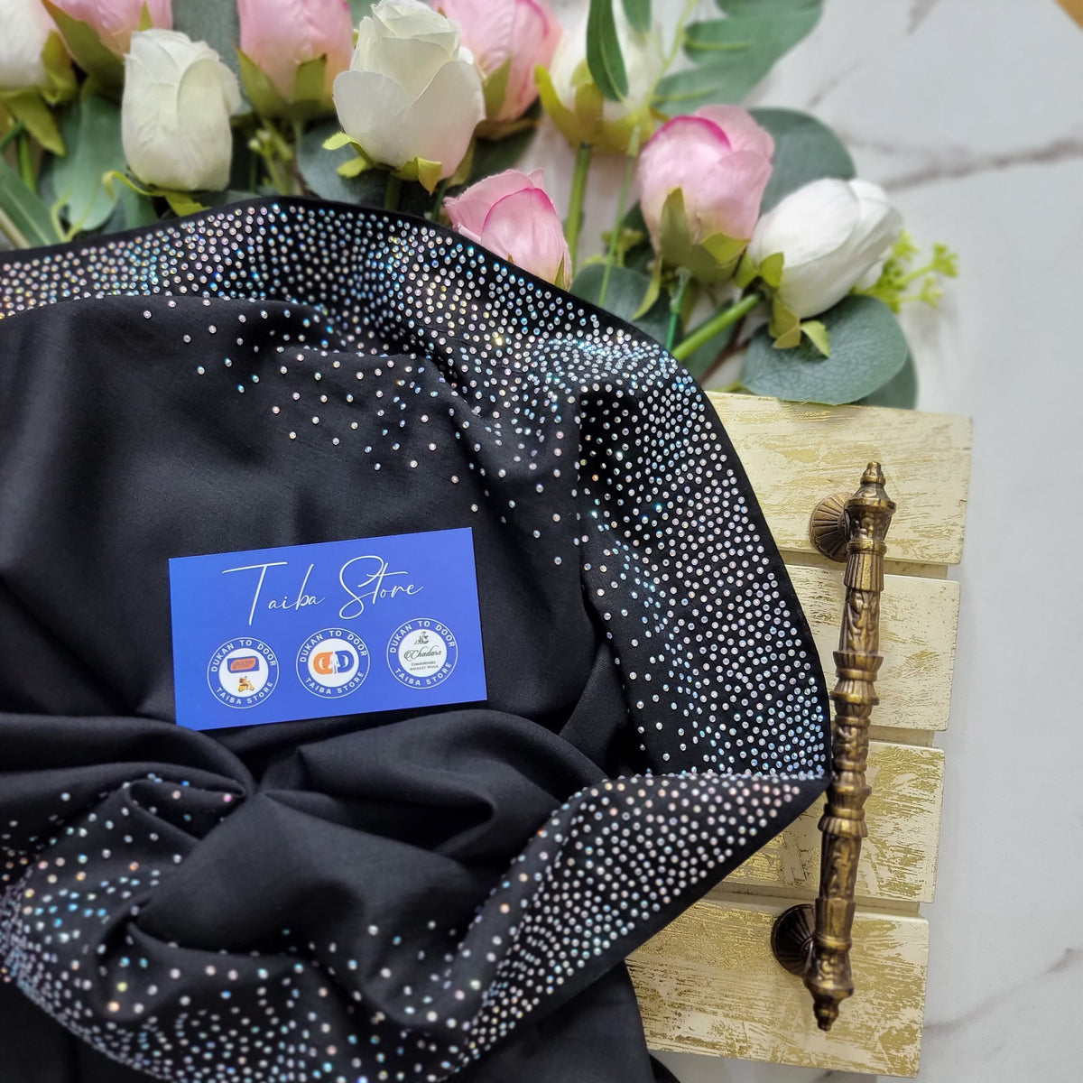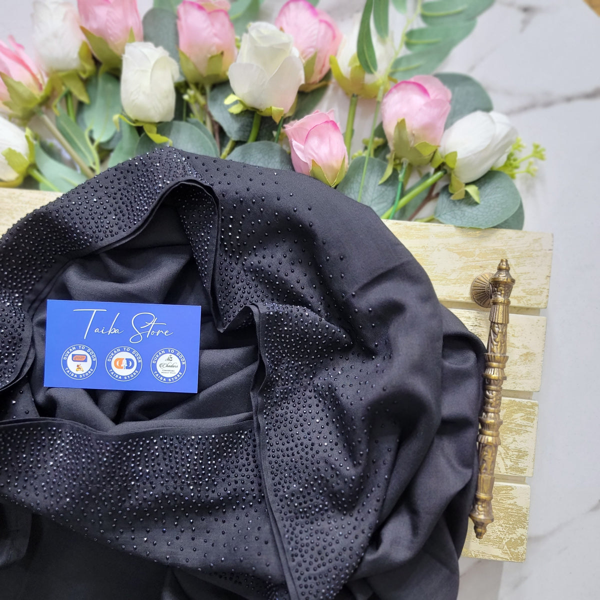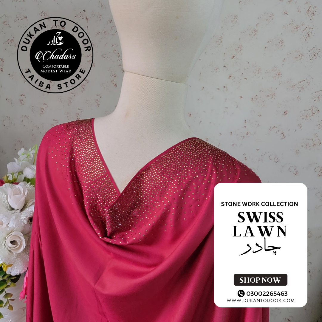 This chadar features a beautiful scattered stone pattern inspired by falling rain, adding a subtle yet luxurious shine to your modest wear. Lightweight, comfortable, and timeless, perfect for daily use, gatherings, and gifting.