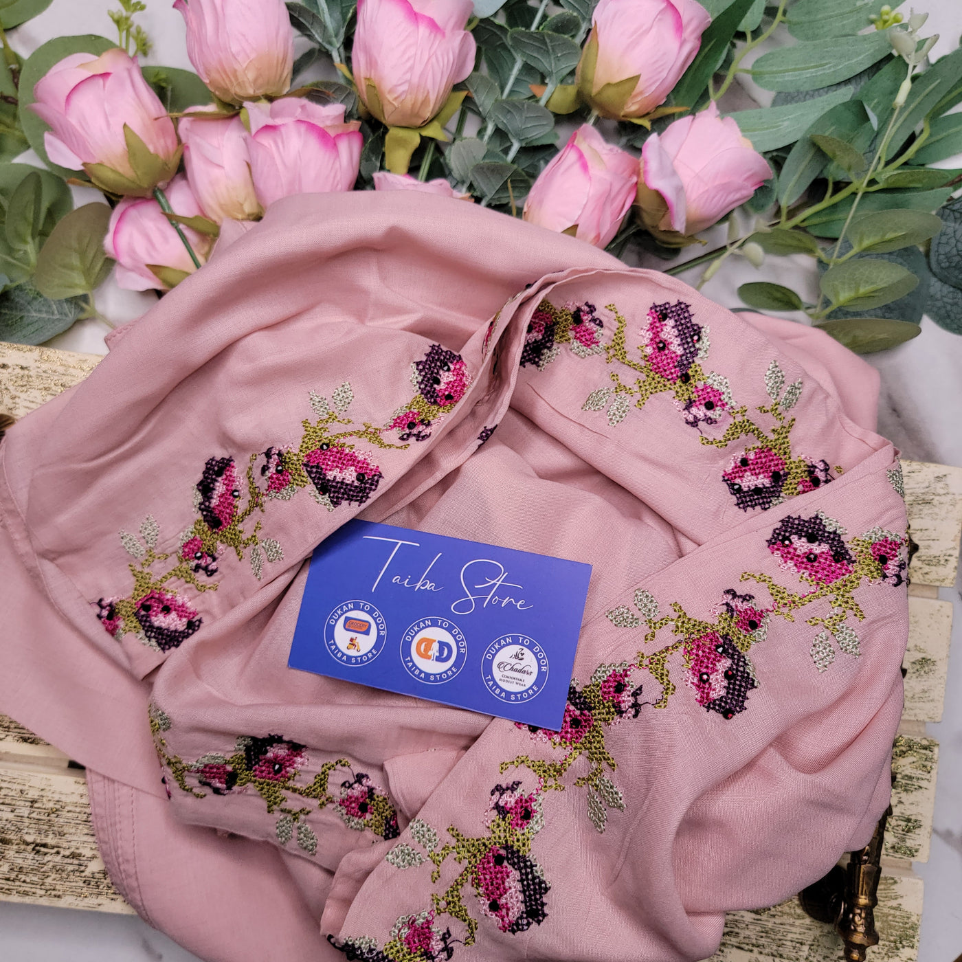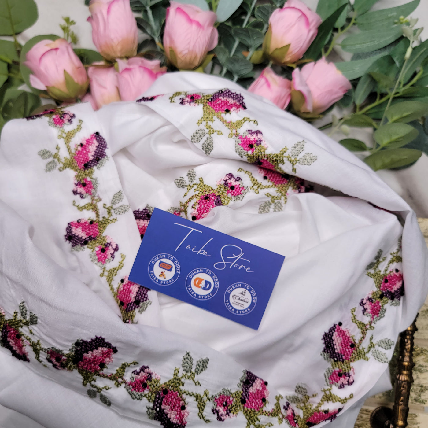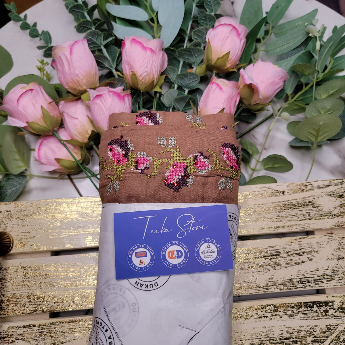 Experience the timeless beauty of the Cross-Stitch Embroidered Chadar, designed for grace, comfort, and modesty. This exquisite chadar features cross-stitch embroidery on the forehead border, enhancing its delicate and sophisticated look.