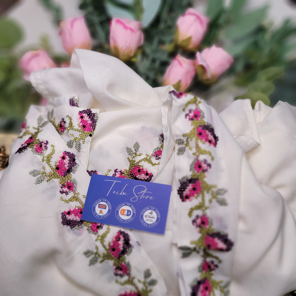 • Intricate Cross-Stitch Embroidery – Elegant detailing on the forehead border