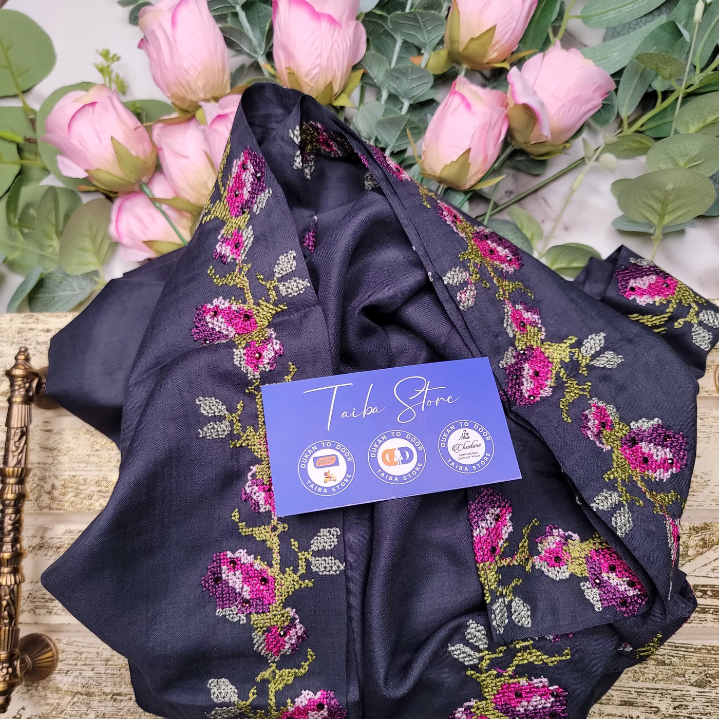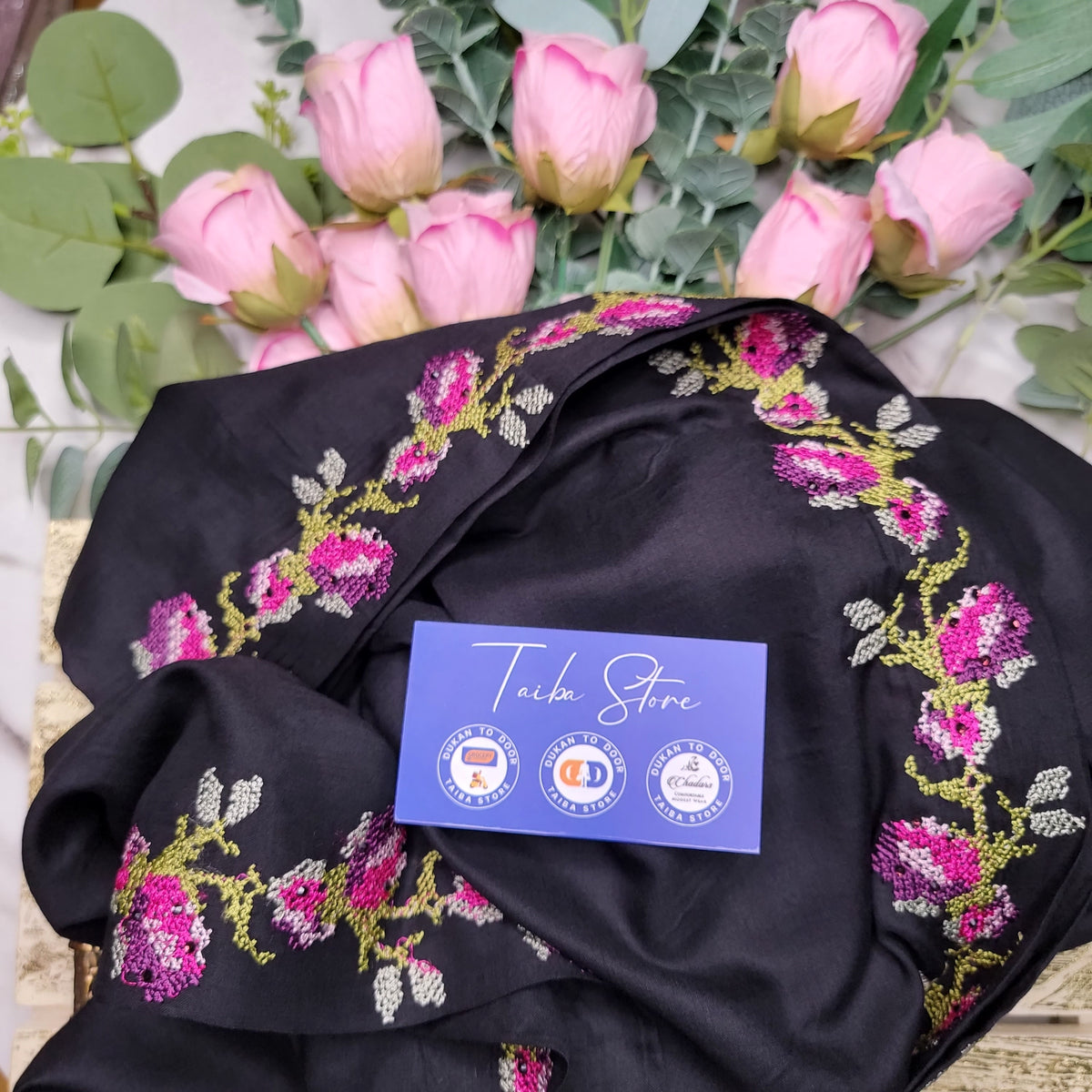 Cross-Stitch Embroidered Chadar - Black