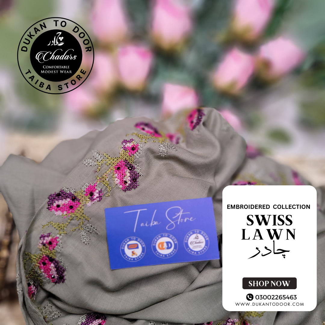 Designed for women seeking both comfort and elegance, this Swiss Lawn chadar is perfect for offering namaz, casual outings, or adding a stylish layer to any outfit.
