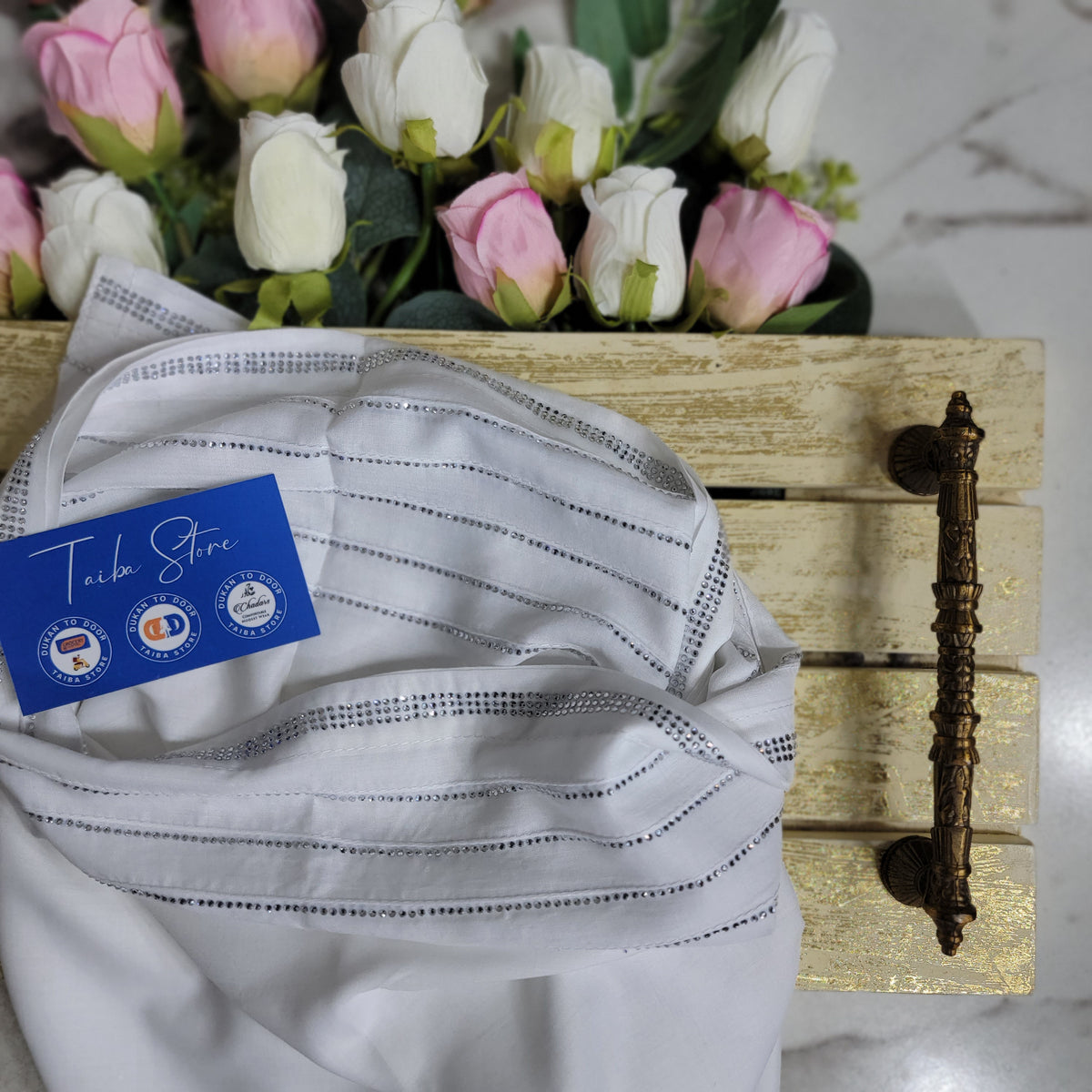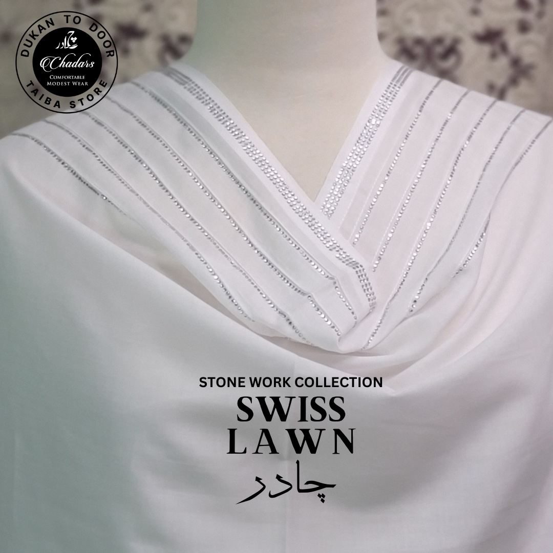 A beautifully detailed Swiss Lawn chadar designed for everyday elegance and special occasions. The soft, breathable fabric drapes effortlessly, offering comfort, modesty, and a luxurious feel. Each piece features delicate multi-line stonework that adds a classy sparkle without being overpowering.